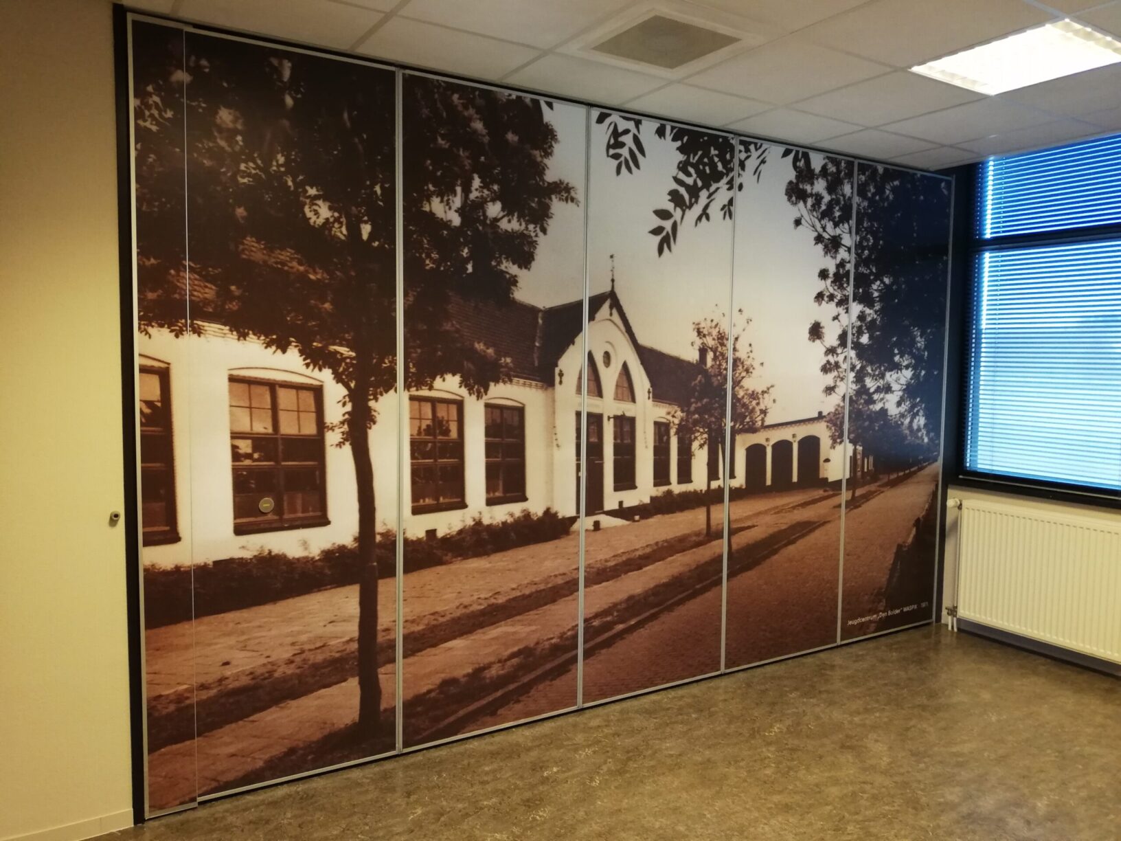Heeft u er wel eens aan gedacht een saaie en kale systeemwand te voorzien van een fotoprint? Nee? Dat zou u toch eens moeten doen! Wij laten u graag de transformatie van de opklapbare wand bij Sociaal Cultureel Centrum Den Bolder in Waspik zien. Het resultaat brengt sfeer en doet herinneren aan hoe deze plek er vroeger uitzag.